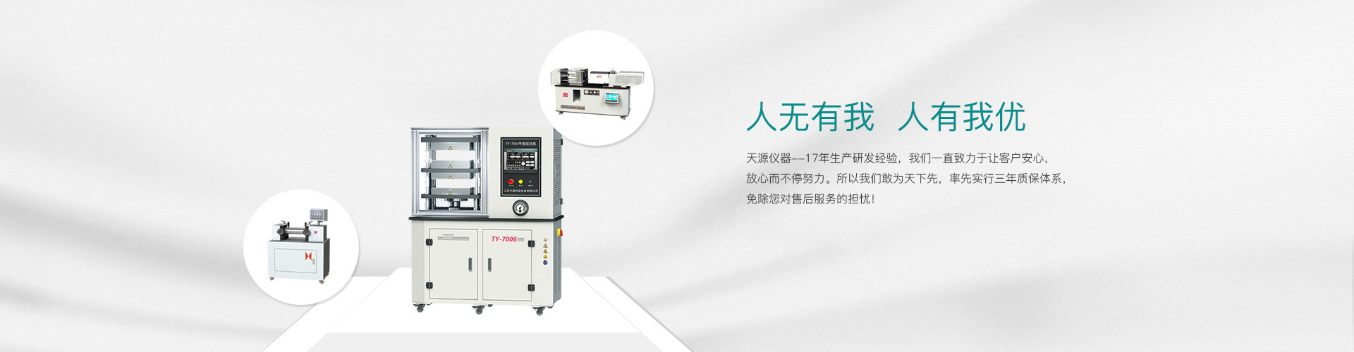 “江蘇天源”經(jīng)過15年的錘煉,現(xiàn)有員工50余人,公司設有電子式萬能試驗機、塑料物理檢測儀器、橡膠物理檢測儀器和高分子材料制樣設備4條產(chǎn)品線,為用戶提供全系列的電子萬能試驗機(10N-600Kn)、全系列高分子材料檢測儀器及高分子材料工藝應用培訓與研發(fā)。